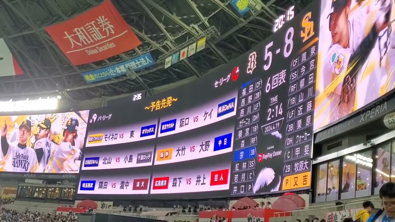 20240419 モイネロと東!明日翌日・予告先発投手の発表【福岡ソフトバンクホークスvsオリックス・バファローズ】5回ウラ終了後@福岡PayPayドーム・外野ライト 【福岡ソフトバンクホークス】リバン・モイネロ 【オリックス・バファローズ】東晃平 #予告先発投手 #予告先発 #先発投手 #福岡paypayドーム #福岡ペイペイドーム #paypayドーム #ペイペイドーム #ペイド #福岡ドーム ORIX Buffaloesオリックス・バファローズ東晃平 NPBHUB.COM | The Fanbase of Nippon Baseball & Nippon Professional Baseball