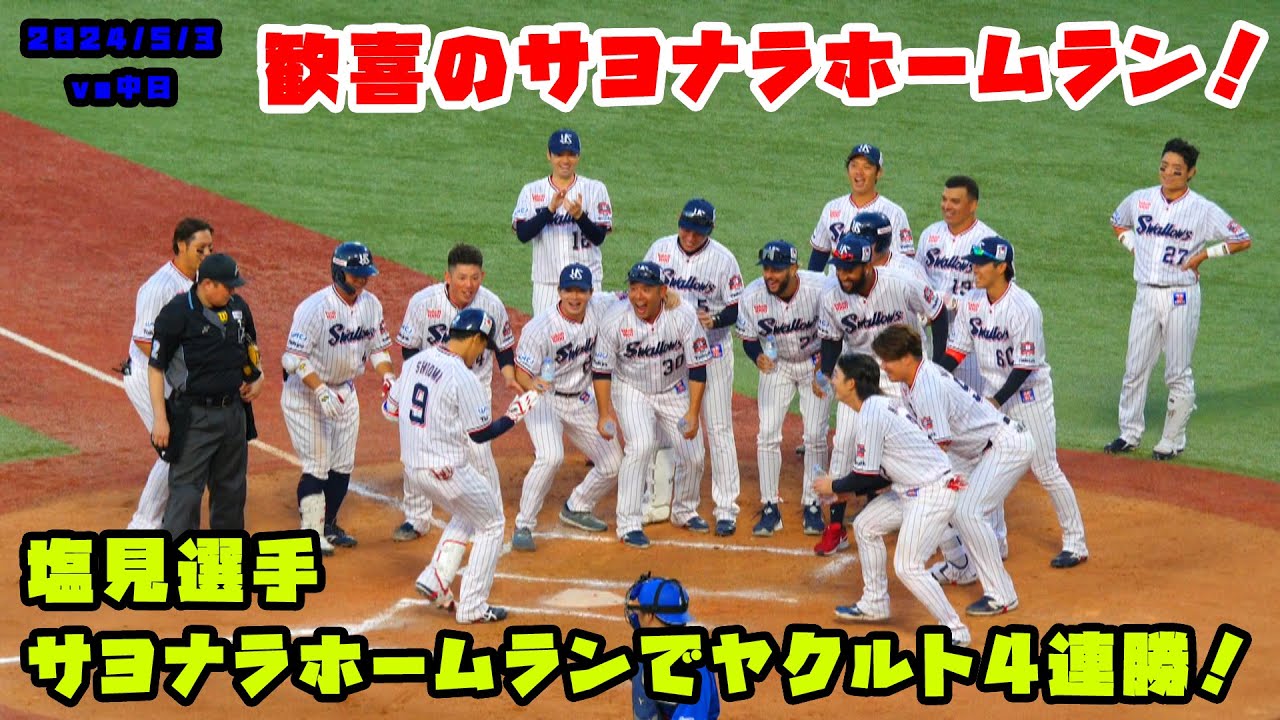 塩見選手 歓喜のサヨナラホームランでヤクルト4連勝!!すわほー! 2024/5/3 vs中日