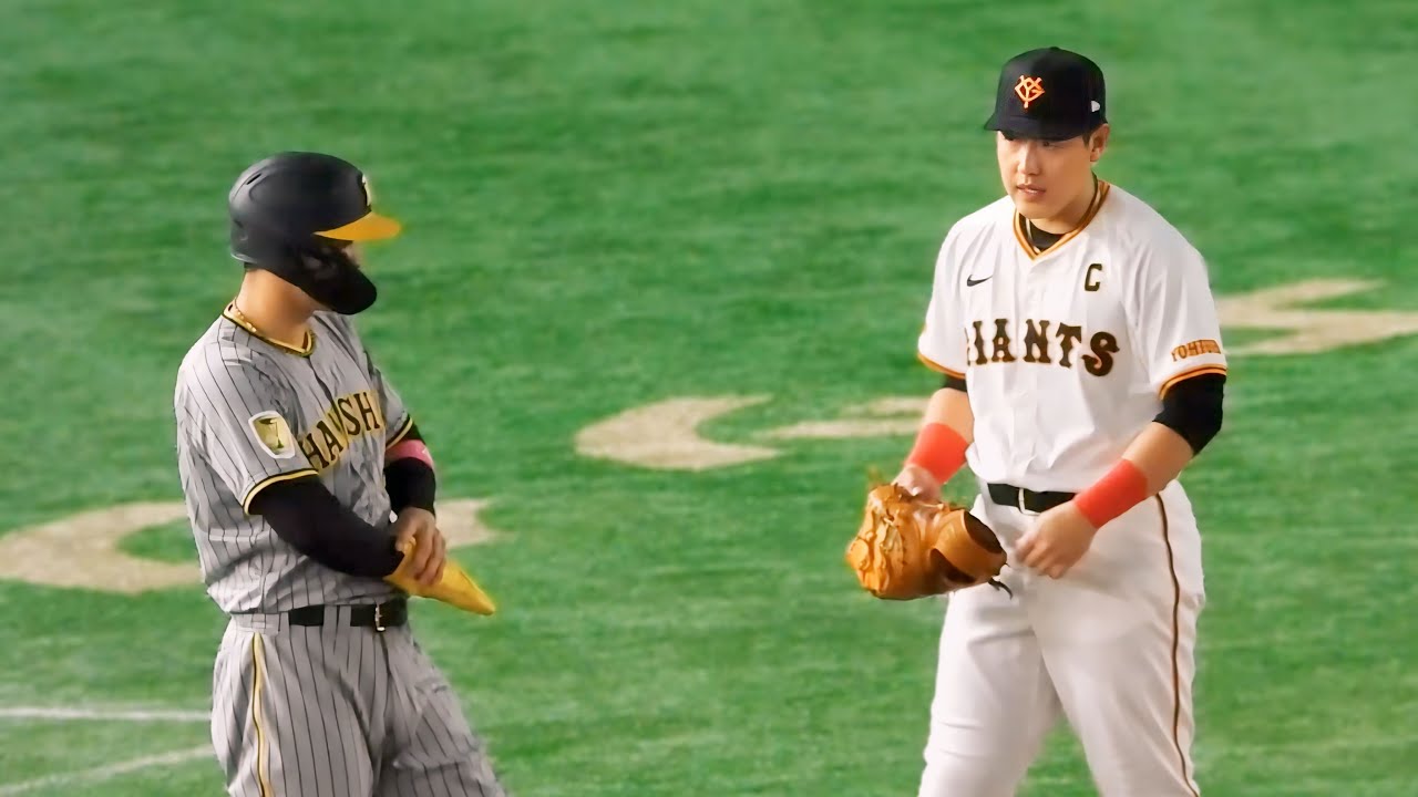 【大丈夫?!】死球でキレ気味の佐藤輝明に声かけて落ち着かせる岡本和真 2024.5.3