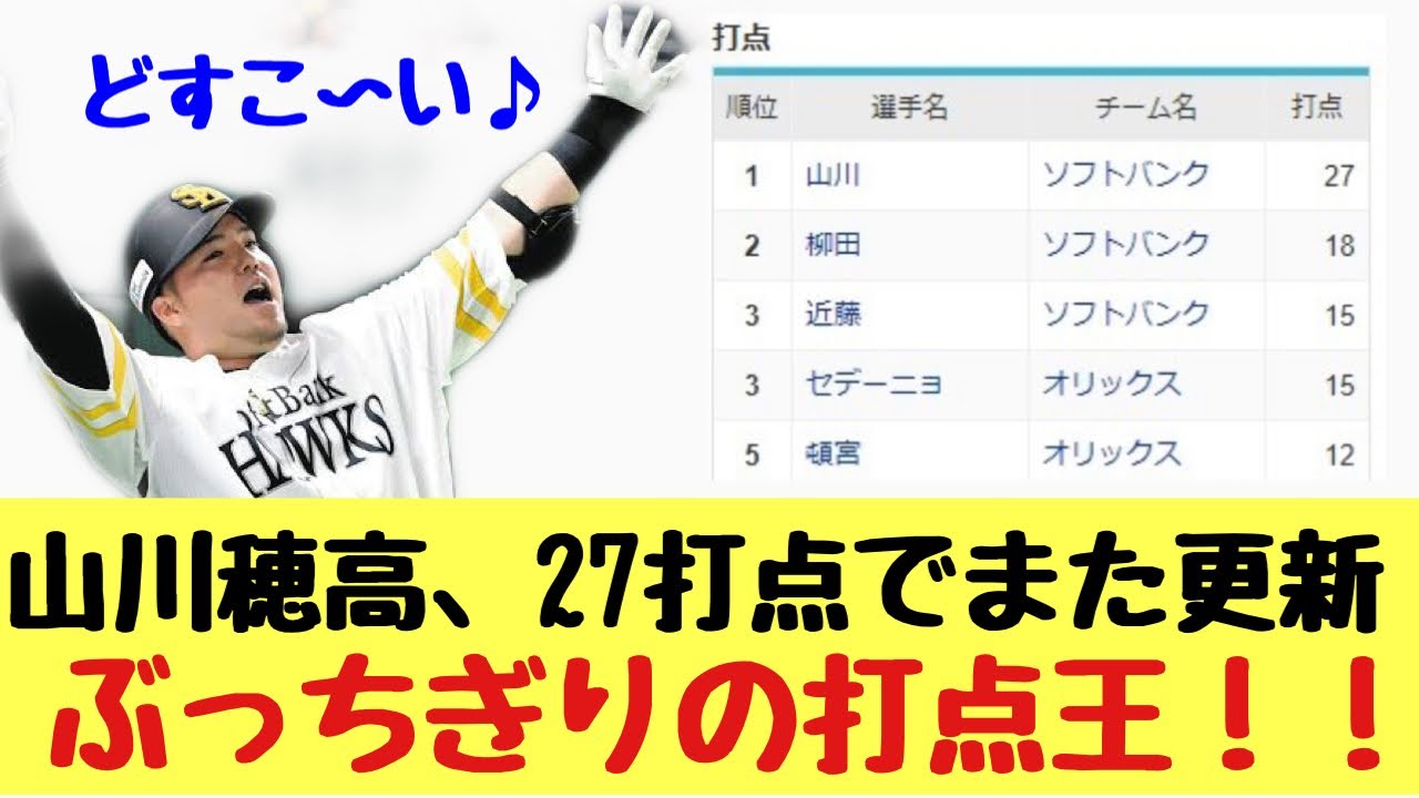山川穂高、27打点でまた更新 12球団でぶっちぎりwww