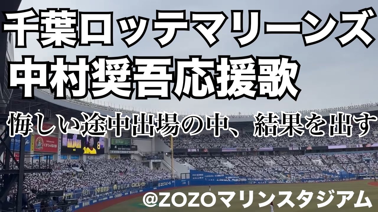 千葉ロッテマリーンズ 中村奨吾応援歌 2024.04.28撮影 @ZOZOマリンスタジアム 千葉ロッテマリーンズ 中村奨吾応援歌 開幕から状態が上がらず、この試合は守備から途中出場ながら結果を出しました。 ◾️歌詞 【前奏】 (手拍子) よっしゃあ!!! 【曲】 奨吾 奨吾 中村奨吾 魂込めた一打を魅せろ オオオオ 奨吾 奨吾 中村奨吾 熱く燃えろよ 奨吾 Chiba Lotte Marines中村奨吾千葉ロッテマリーンズ NPBHUB.COM | The Fanbase of Nippon Baseball & Nippon Professional Baseball