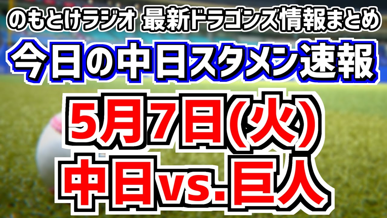 勝てば3連勝の中日スタメンが変わるかを見守る放送 5月7日(火) 今日の中日ドラゴンズスタメン速報/試合直前雑談 中日vs.巨人 のもとけラジオ番外編