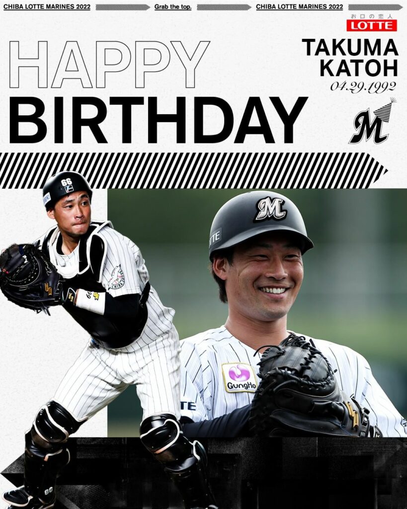 本日4/29は、 #加藤匠馬 選手の30歳の誕生日です。おめでとうございます! #chibalotte #happybirthday Chiba Lotte MarinesChiba Lotte Marines Official MediachibalottehappybirthdayNPB Pacific LeagueOfficial Media加藤匠馬千葉ロッテマリーンズ NPBHUB.COM | The Fanbase of Nippon Baseball & Nippon Professional Baseball
