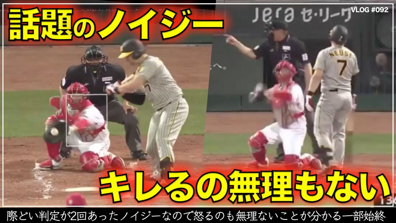 4回の表、無死ランナー1塁で回ってきた第2打席。1球目ボールの後同じく見送った2球目の判定はストライク。首を振って納得がいかない様子を見せたノイジーだが切り替えてバットを構える。3球目も大きく外れてボール。そして4球目。外に外れる球にバットを止め、自信をもって見送ったものの、判定はストライク・・・