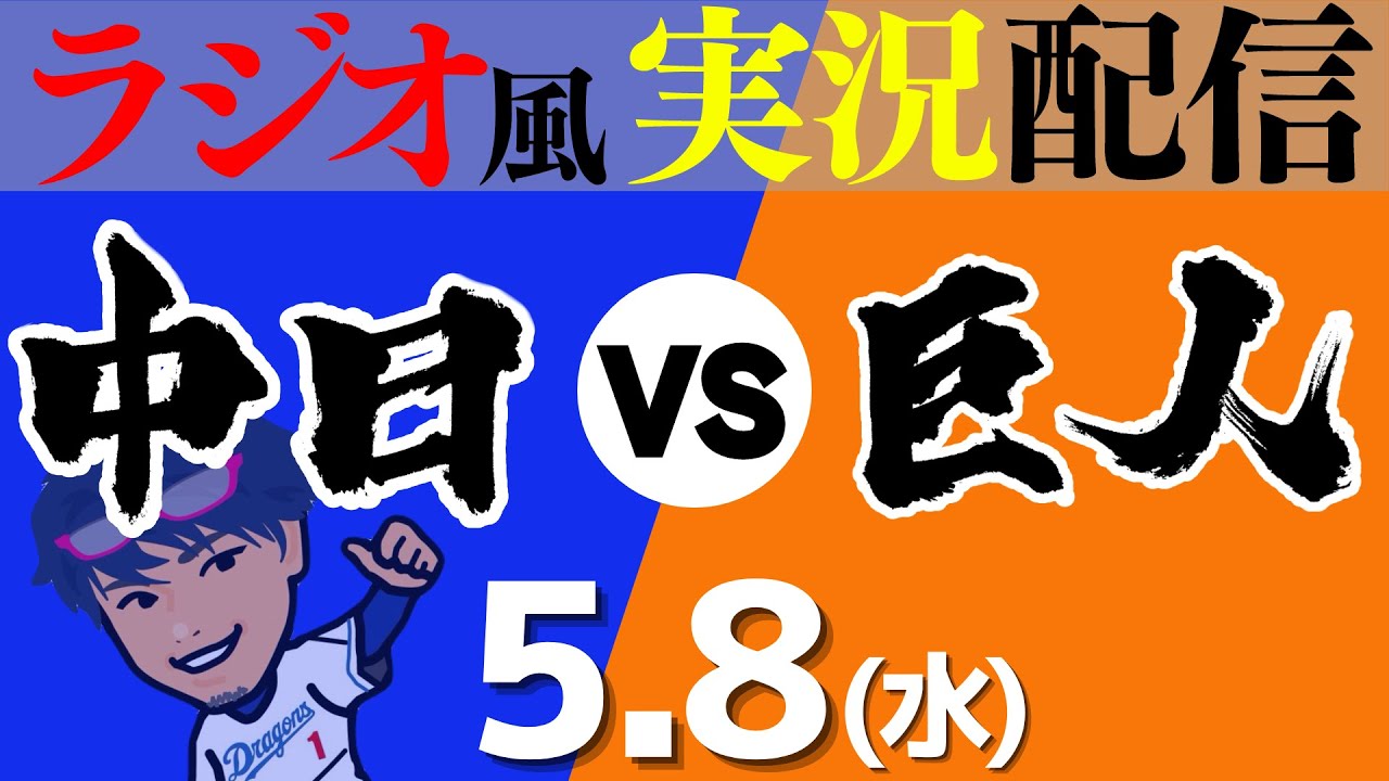 【ドラゴンズ応援実況】5/8(水) 中日ドラゴンズVS読売ジャイアンツ【プロ野球ライブ ラジオ風実況】
