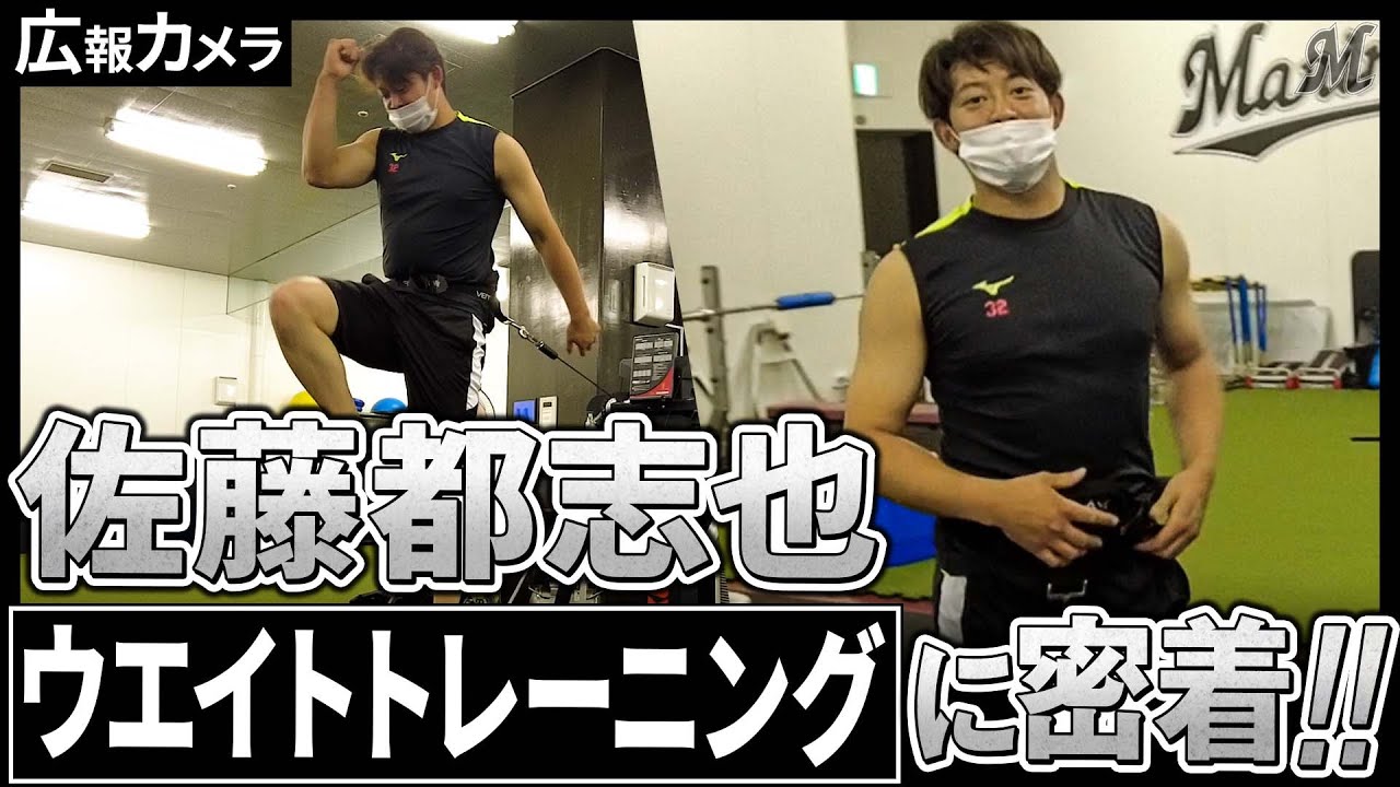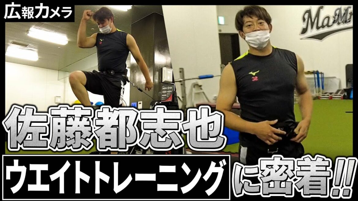 雨天中止のため室内でウエイトトレーニングに励む佐藤都志也選手にカメラが密着しました!