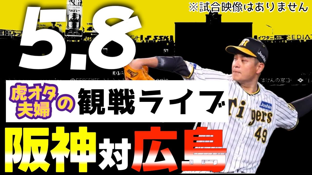 【阪神:観戦ライブ】5/8阪神タイガース対広島東洋カープの公式戦を虎オタ夫婦が皆さんと一緒に観戦・応援するLIVE配信です。予告先発投手:阪神大竹、広島大瀬良