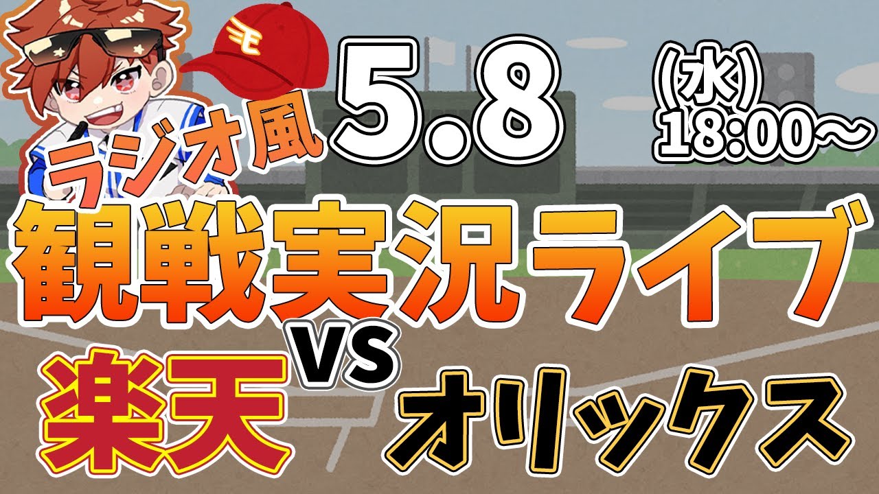 【観戦ライブ配信】徹底解説!プロ野球 楽天 VS オリックス #rakuteneagles #東北楽天ゴールデンイーグルス 5/8【ラジオ実況風】
