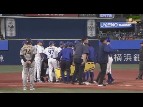 5月10日 DeNA・宮崎 打球が頭部直撃で負傷交代 アクシデントに球場騒然 シートで覆われながら搬送 阪神ファンも宮崎コール. DeNA×阪神