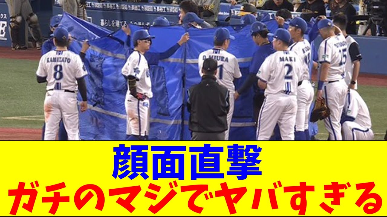 【大事故】DeNA・宮崎の顔面に打球が直撃し、ブルーシートで隠されガチのマジでヤバすぎるとなんjとプロ野球ファンの間で話題に【なんJ反応集】