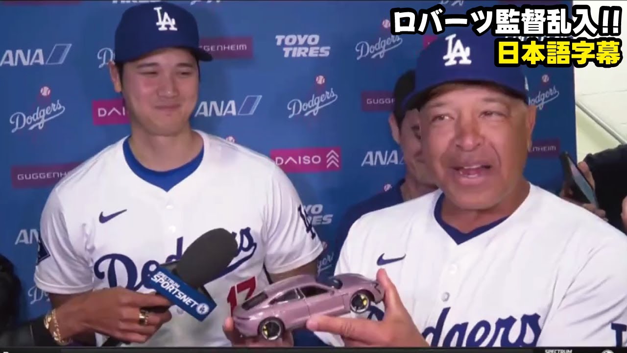大谷のインタビュー中に、ロバーツ監督乱入で爆笑ムードに!「ワールドシリーズ勝ったらポルシェあげる」日本語字幕 大谷翔平 shohei ohtani