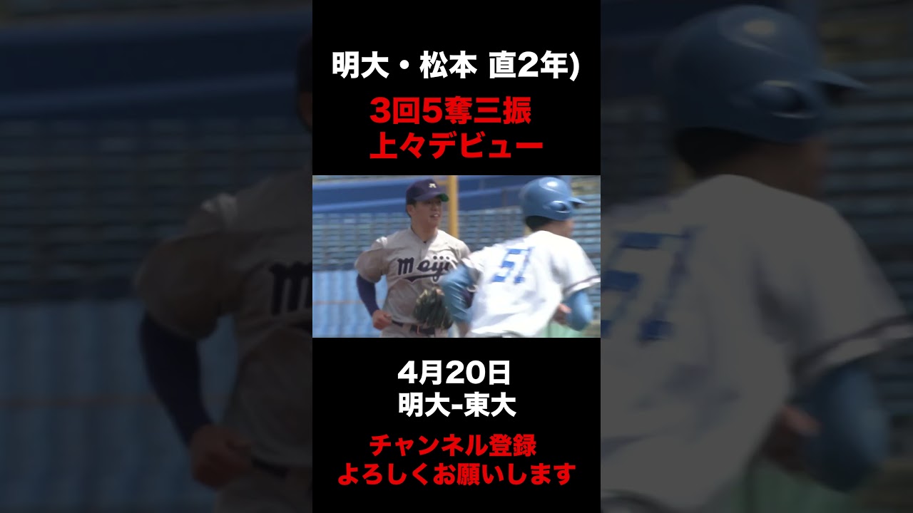 【3回5奪三振!上々デビュー】明大・松本直「リーグ戦初登板」4月20日 明大-東大#東京六大学野球
