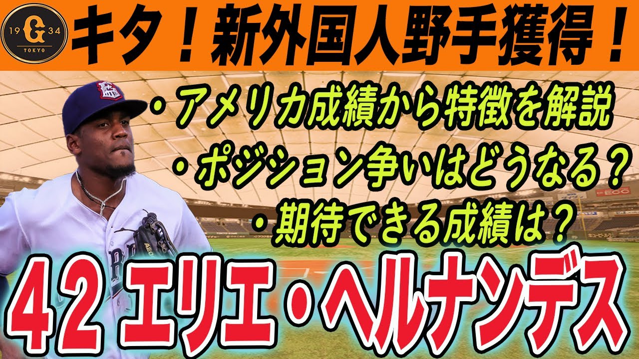 【巨人】新外国人選手エリエ・ヘルナンデス獲得!マイナー実績十分!貧打を救う救世主として期待! 読売ジャイアンツ