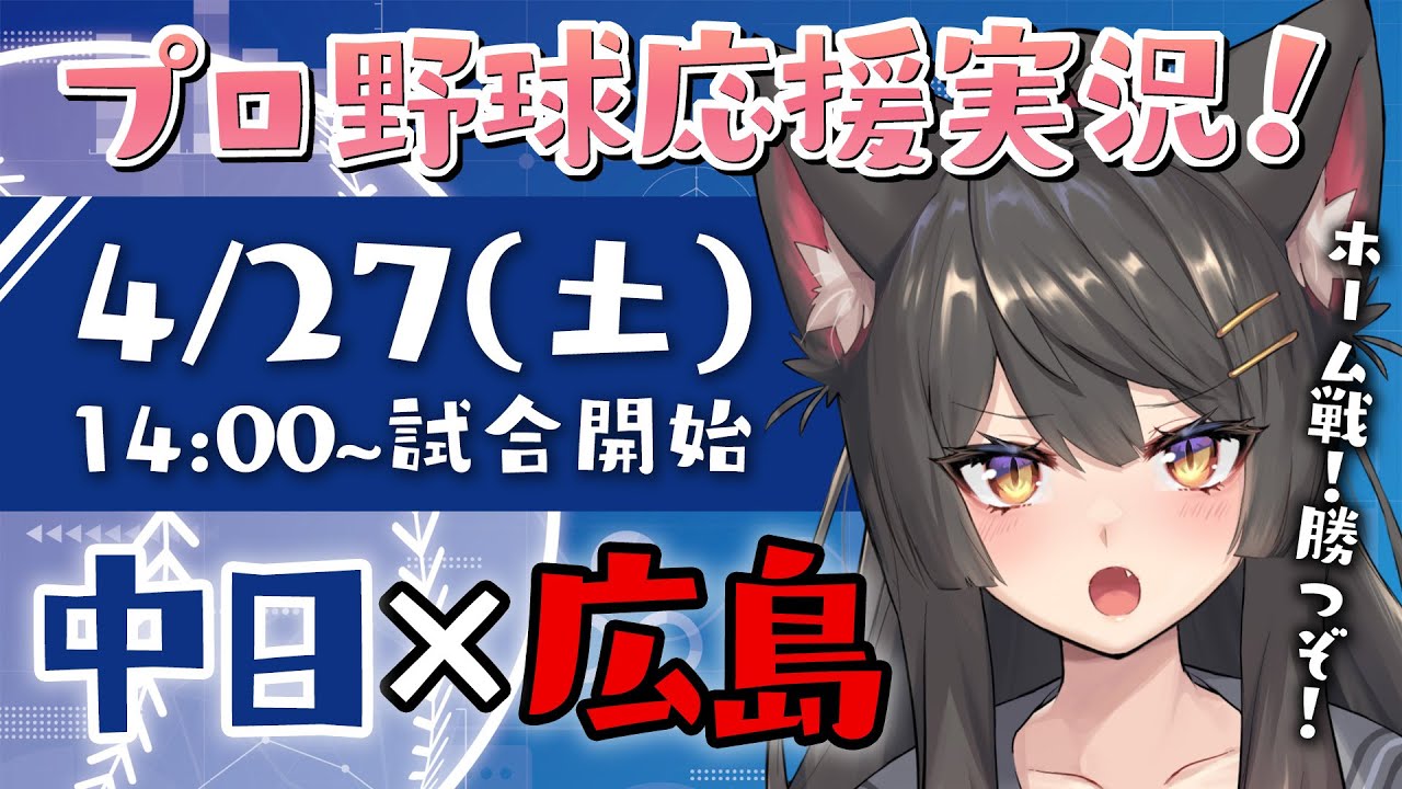【プロ野球ライブ 】4/27(土) 中日ドラゴンズ vs 広島東洋カープ 応援実況LIVE!初見さんも大歓迎!【蘇芳またたび/VTuber】