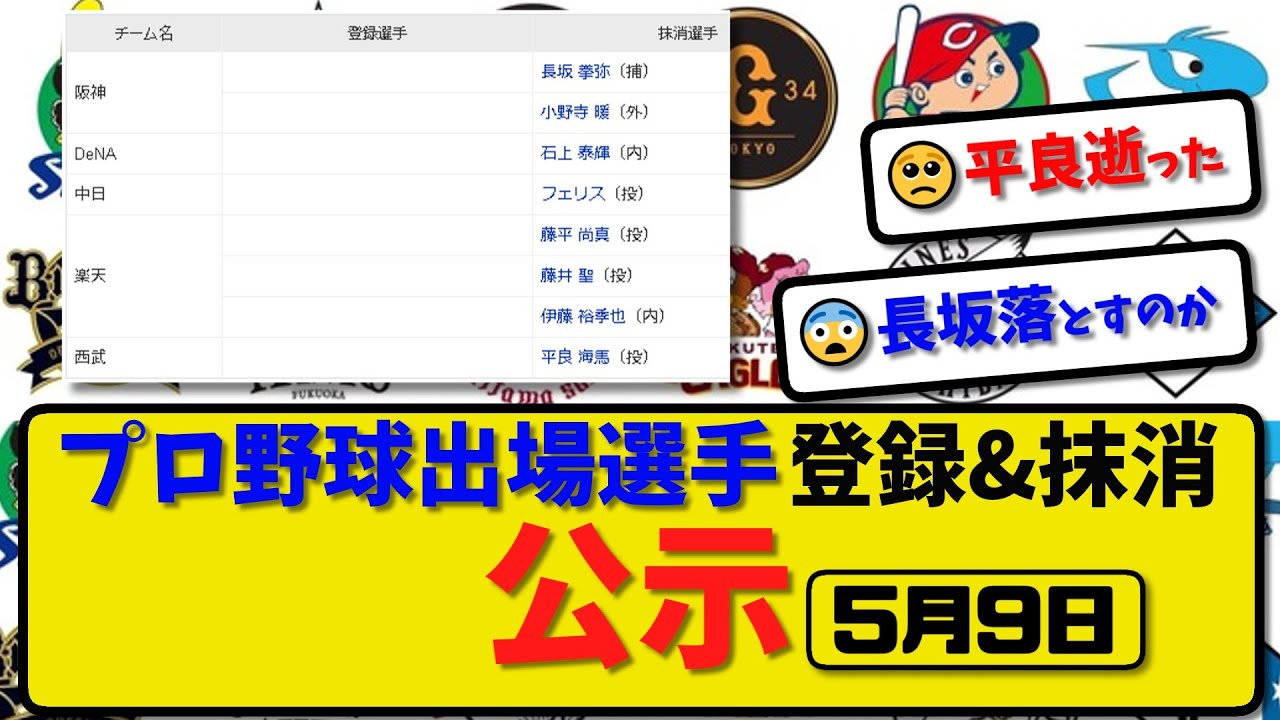 【公示】プロ野球 出場選手登録&抹消 公示5月9日発表|阪神長坂&小野寺 横浜石上 中日フェリス 楽天藤平&藤井&伊藤 西武平良ら抹消【最新・まとめ・反応集・なんJ・2ch】