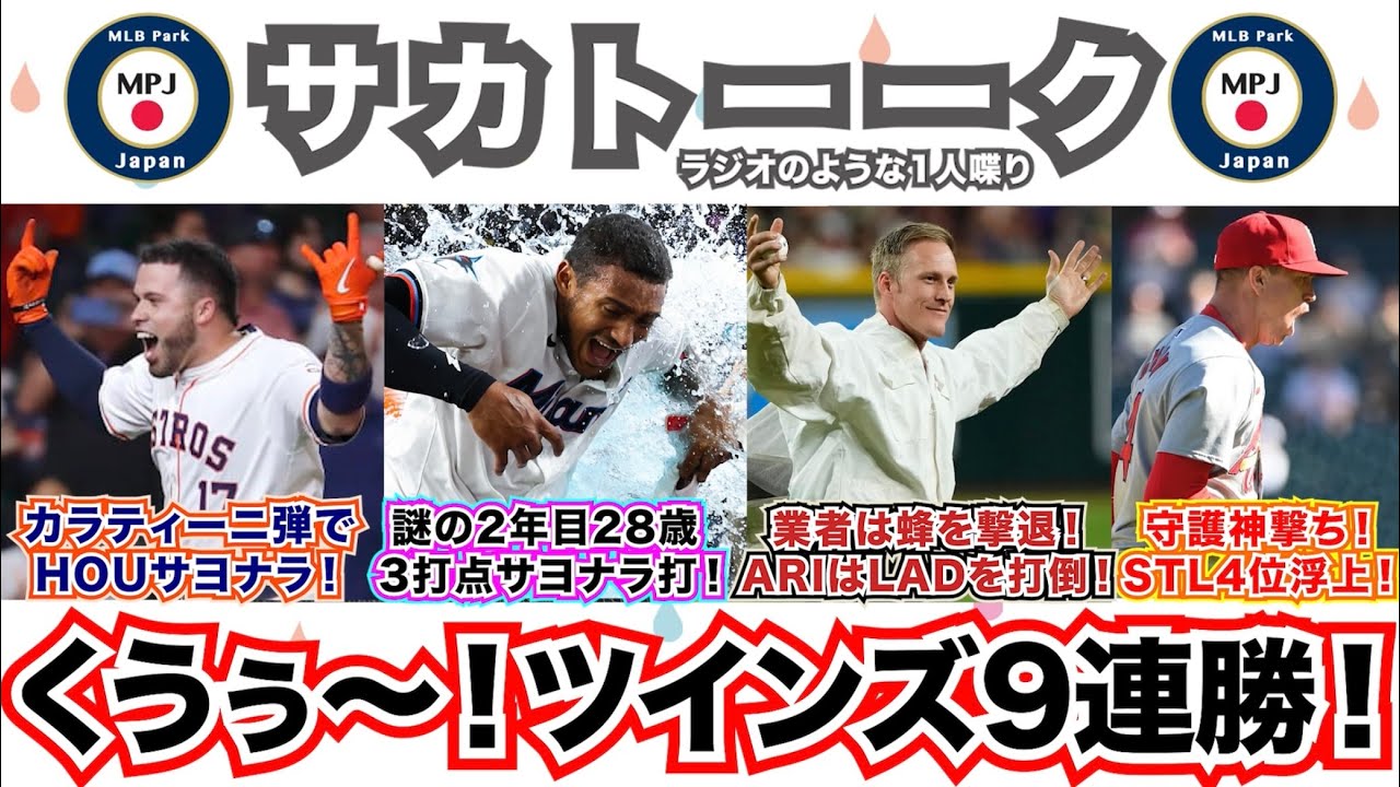 【34/162】V.カラティーニ弾でアストロズサヨナラ!謎の男がマーリンズを救う!蜂撃退!ダイヤモンドバックスはドジャース打倒!カージナルスが4位浮上!ツインズ9連勝くぅぅ〜!