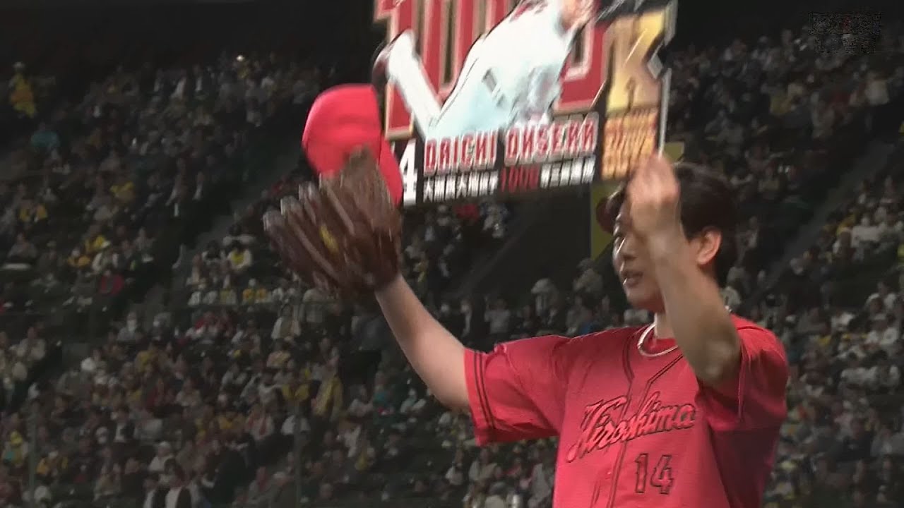 広島東洋カープ 大瀬良大地投手(32)が六回、阪神タイガース 佐藤輝明より空振り三振を奪い史上157人目の通算1,000奪三振を記録した。