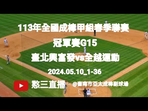 2024.05.10_1-36_1【113年全國成棒甲組春季聯賽】 冠軍賽G15~臺北市臺北興富發棒球隊vs臺北市全越運動棒球隊(第一段直播)《駐場直播,No.36在臺南市亞太成棒副球場》