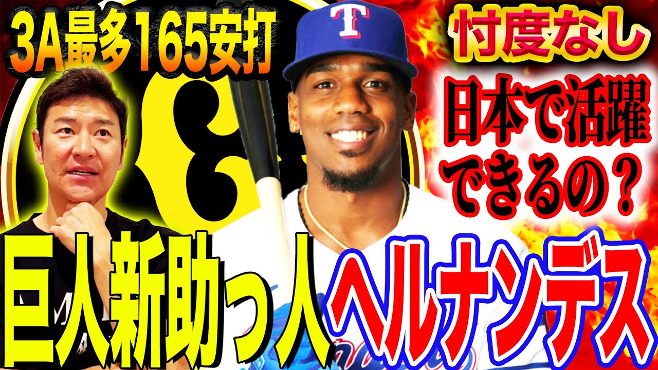 巨人が緊急補強で強打の助っ人獲得!テキサス・レンジャーズ3A最多安打のエリエ・ヘルナンデス選手と契約合意!待望の外国人選手補強だが、果たしてその実力は?元メジャー尚成が投手目線でヘルナンデス選手の巨人適正度を分析!ヘルナンデス選手の今季成績もズバリ予想します!是非最後までご覧ください⚾️