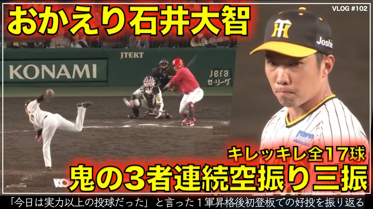 【阪神タイガース】70秒でわかる 石井大智 1軍昇格初登板で鬼の三者連続空振り三振 キレッキレ全17球を振り返る リードは坂本誠志郎(阪神対広島 第6戦)
