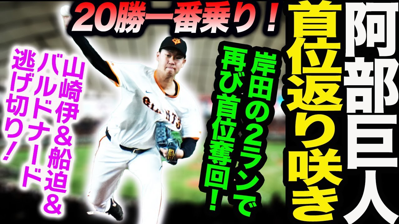 阿部巨人が20勝一番乗り!岸田の2ランで再び首位奪回!山崎伊&船迫&バルドナードで逃げ切り!読売巨人軍 ジャイアンツ 巨人 GIANTS 阿部監督