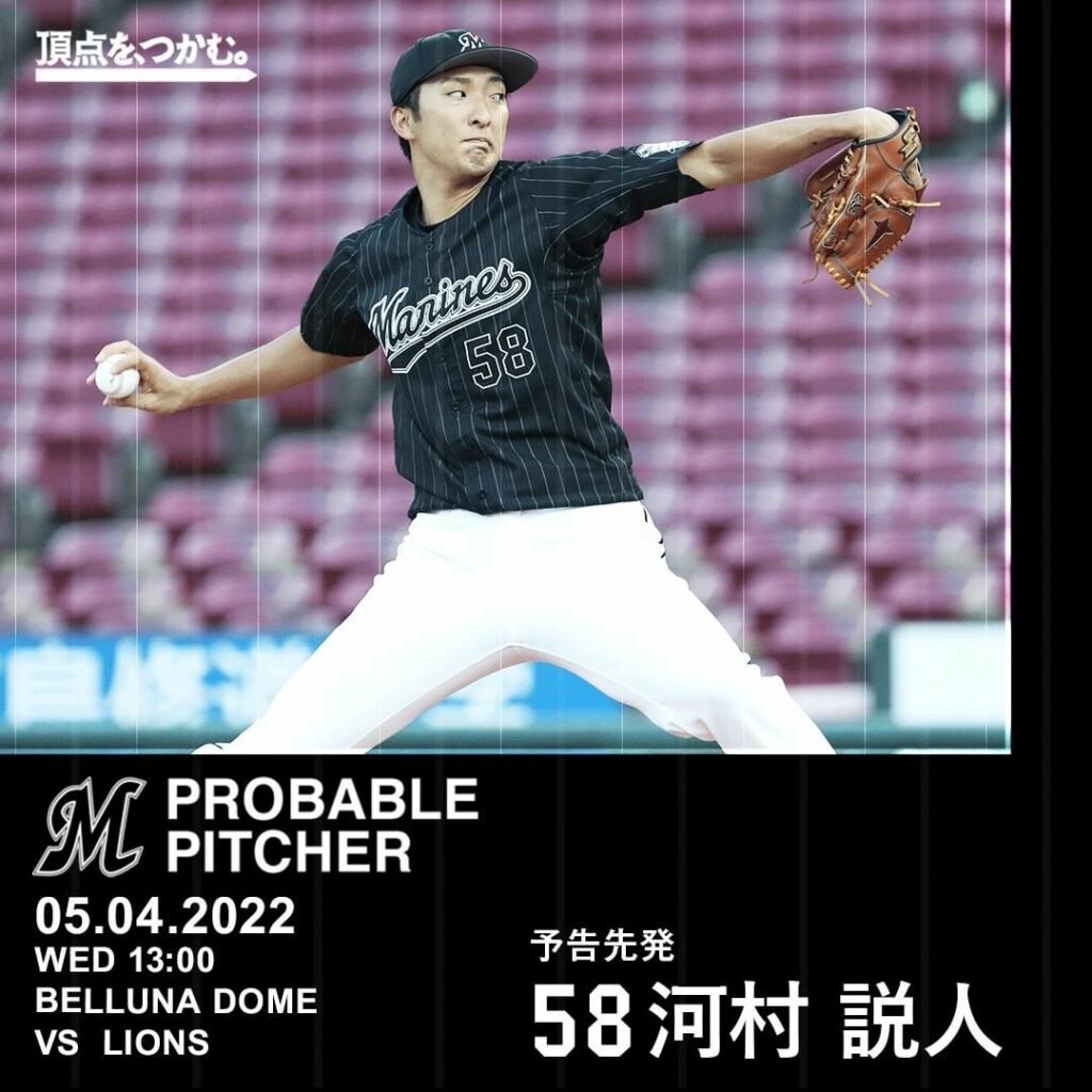 05.04.2022 予告先発:#河村説人 投手 #chibalotte Chiba Lotte MarinesChiba Lotte Marines Official MediachibalotteNPB Pacific LeagueOfficial Media千葉ロッテマリーンズ河村説人 NPBHUB.COM | The Fanbase of Nippon Baseball & Nippon Professional Baseball