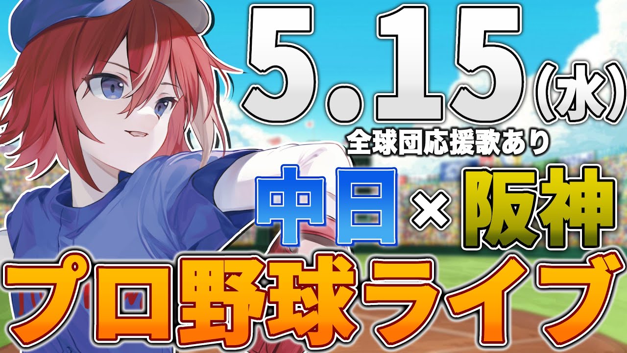 【プロ野球ライブ】阪神タイガースvs中日ドラゴンズのプロ野球観戦ライブ5/15(水)阪神ファン、中日ファン歓迎!!!【プロ野球速報】【プロ野球一球速報】#中日ドラゴンズ #中日ライブ #中日中継