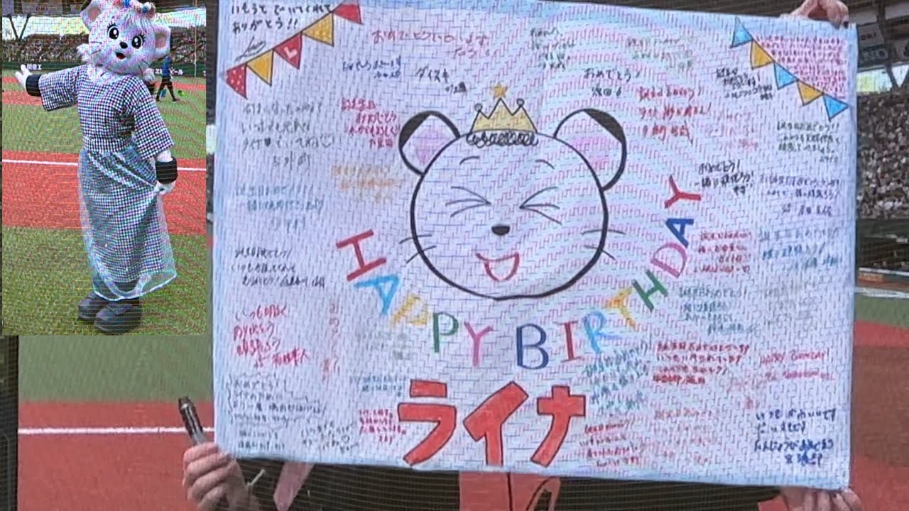 ドレスアップしたライナちゃんの誕生日を選手寄せ書きと球場全体でお祝い!【西武vsソフトバンク】2024/5/5
