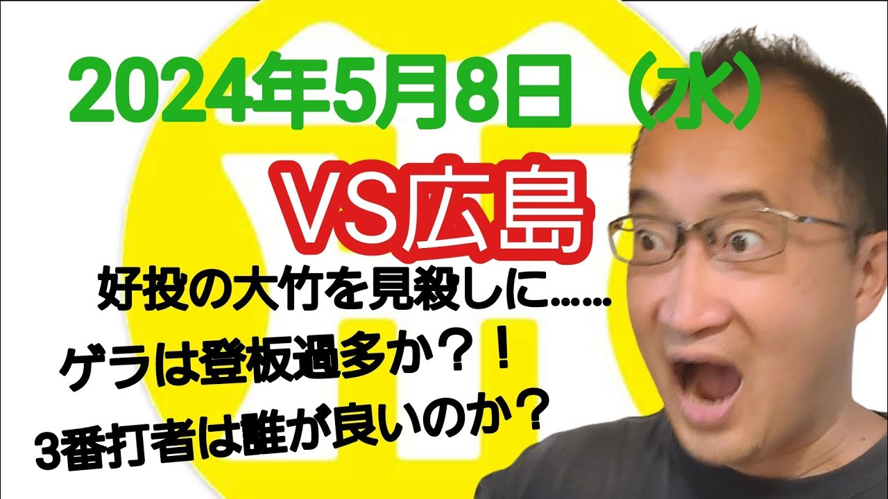 【阪神タイガースについて語る動画】2024年5月8日(水) ● 阪神 1 × 3 広島 ○ 好投の大竹を見殺しに…… 失点のゲラは明らかに登板過多…… 3~6番がノーヒットでは点が取れない……