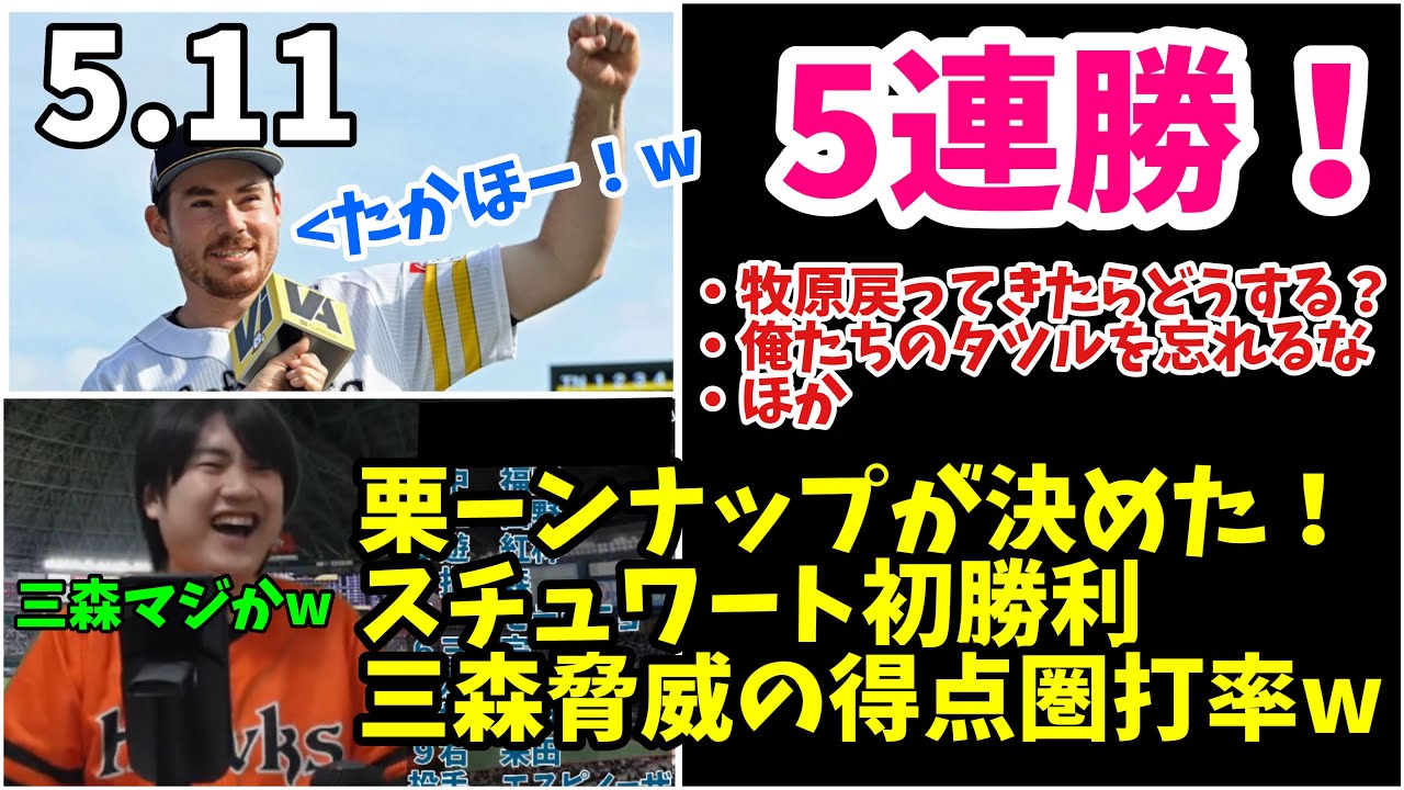 今日の鷹ファンさん、栗ーンナップで勝負を決めた!スチュワート今季初勝利で5連勝!三森は得点圏脅威の7割wオリックスも敵じゃねえな 2024年5月11日 福岡ソフトバンク対オリックス 試合ハイライト