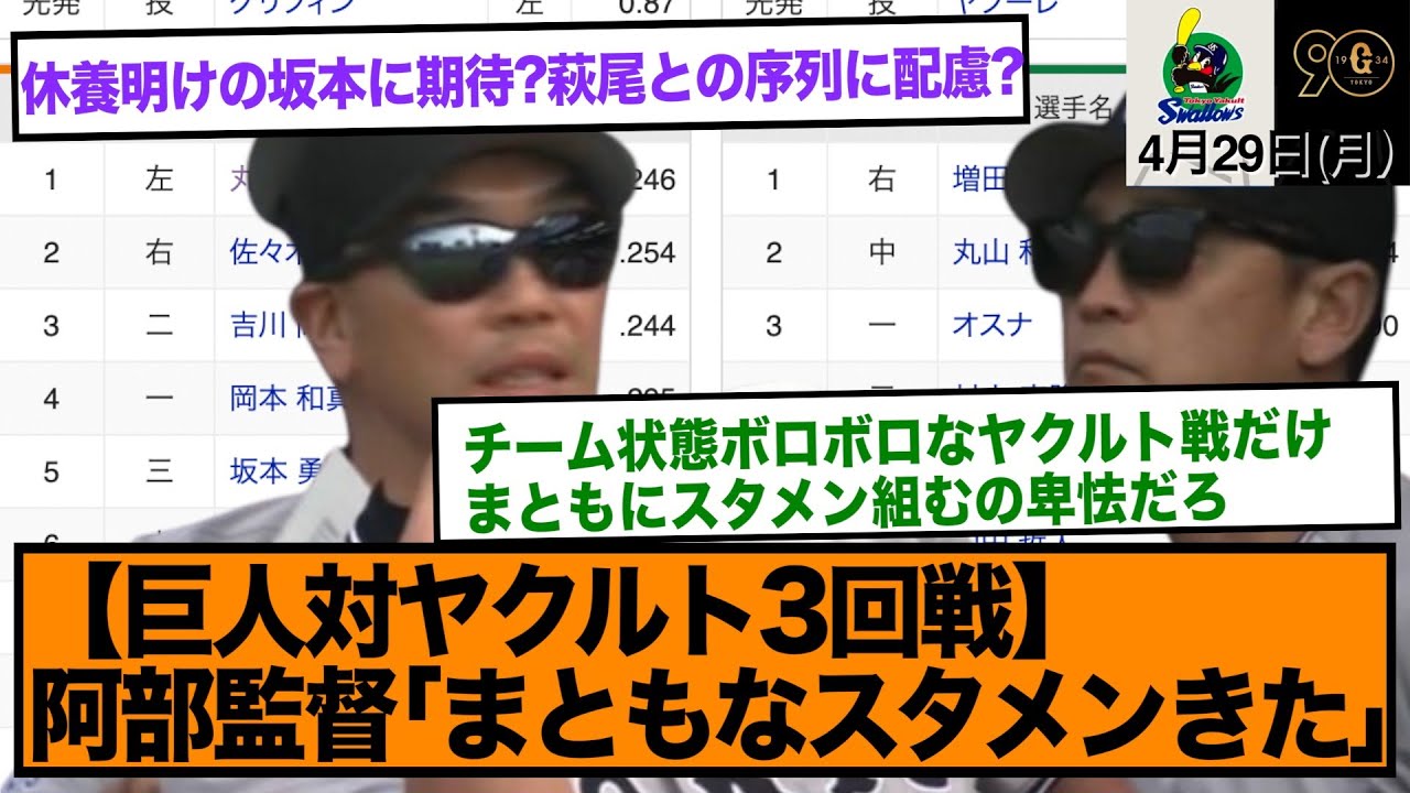 今日の阿部監督「まともなスタメンきた」wwwww ⚾︎オススメ動画⚾︎ 【チャンネル概要】 ご視聴いただきありがとうございます! 今日のプロ野球の試合のリアルタイム反応集をメインに、おもしろネタ、時事ネタ等を紹介しています! チャンネル登録・高評価・コメントよろしくお願いします! 高評価・コメント・チャンネル登録していただけると、とても嬉しいです。 #プロ野球 #巨人 #ジャイアンツ #ジャイアンツ#プロ野球DeNAYomiuri Giantsイーグルスウィーラー 野球オリックスカープサヨナラスワローズセリーグソフトバンクタイガースドラゴンズトレードニュースハイライトバファローズパリーグファイターズベイスターズホークスまとめマリーンズヤクルトライオンズロッテ中日交流戦先発反応集好プレー巨人広島引退応援歌成績新外国人日ハム楽天珍プレー登場曲西武読売ジャイアンツ阪神順位 NPBHUB.COM | The Fanbase of Nippon Baseball & Nippon Professional Baseball
