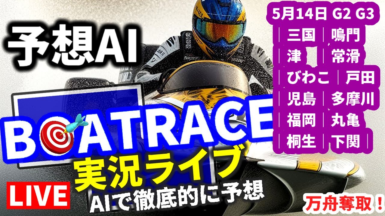 5/14 ボートレース ライブ G2 G3|三国|鳴門|津|常滑|びわこ|戸田|児島|多摩川|福岡|丸亀|桐生|下関| 結果 AI切替 けん玉の日 笹川 キルア