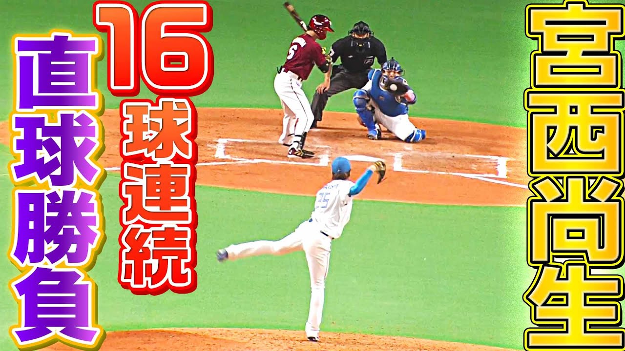 8回からマウンドに上がった北海道日本ハム・宮西尚生。1死を奪い西川遥輝、小深田大翔と対峙するが、この2人に対して全球ストレートの奇策!?に出て、16球連続ストレート勝負でねじ伏せた!!