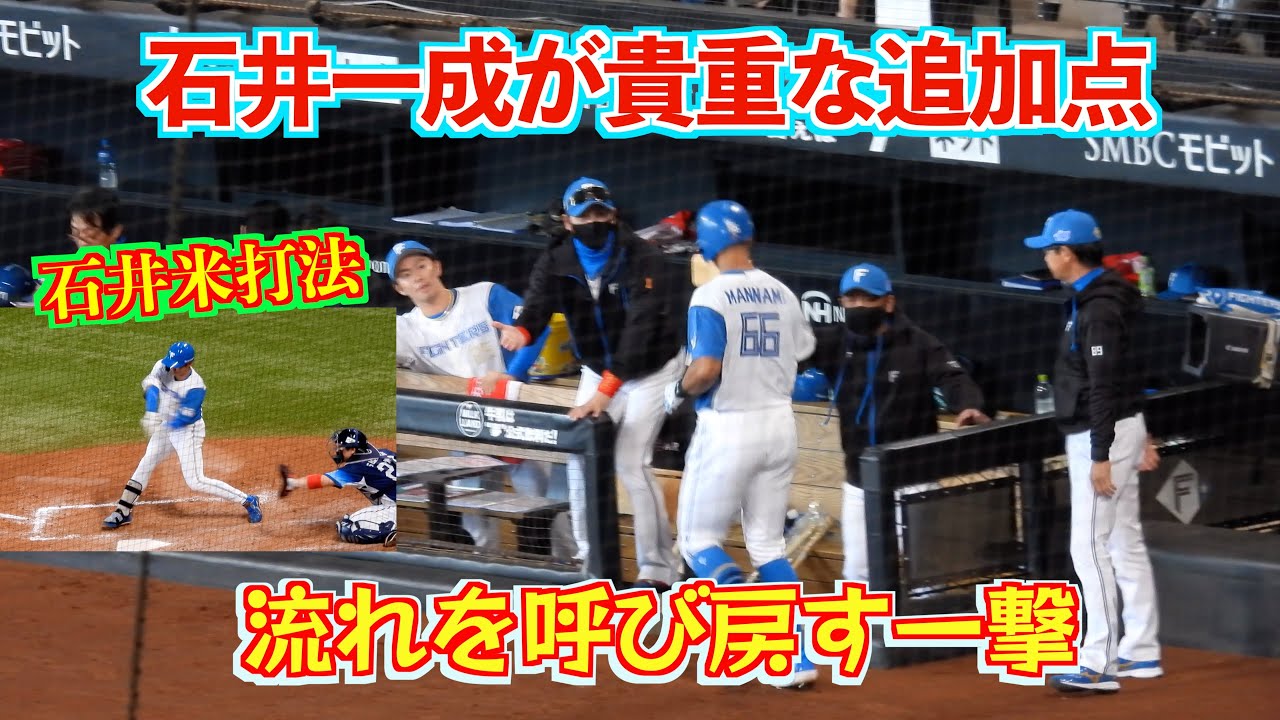 【20240515】3点差に詰め寄られて流れが悪くなりそうな所からの石井一成のタイムリー。4点差になる。