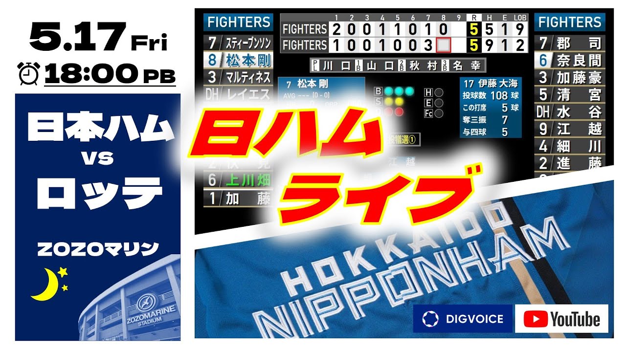 【日ハムライブ】2024年5月17日 北海道日本ハムファイターズ vs 千葉ロッテマリーンズ @ZOZOマリンスタジアム データ解説実況ライブ