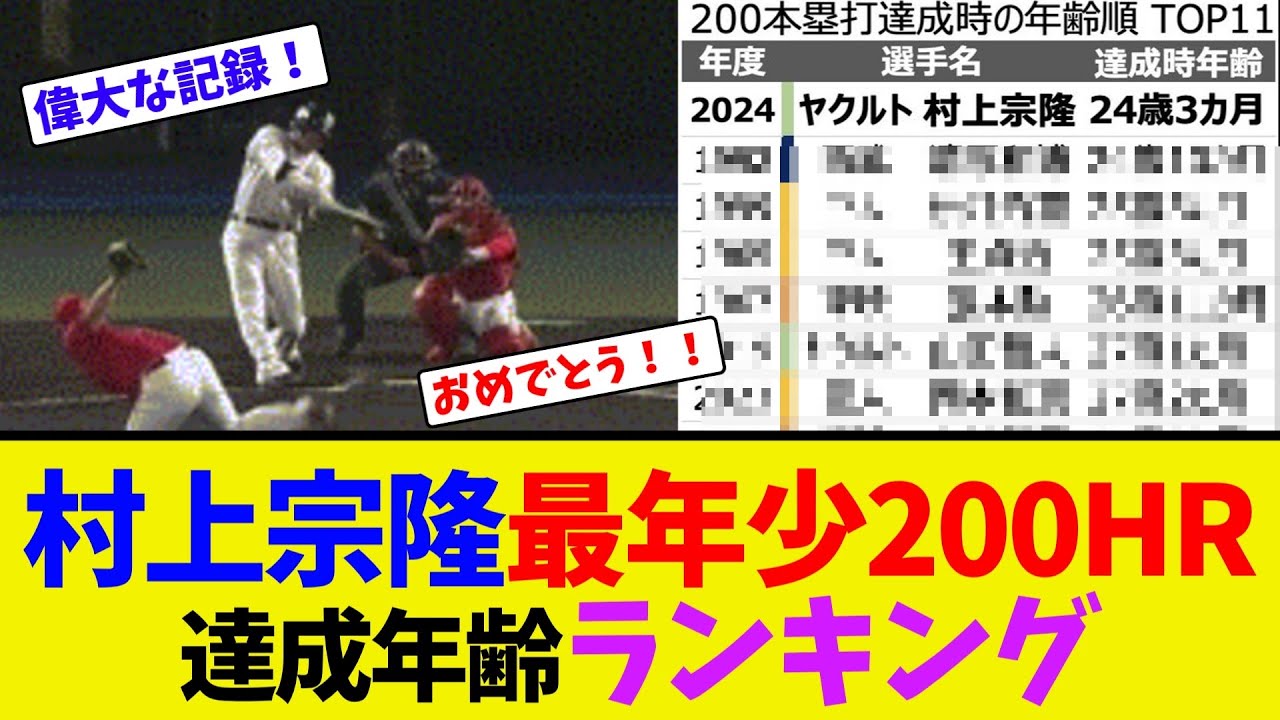 村上宗隆最年少200HR達成、200本塁打達成年齢ランキング【ネット反応集】 Tokyo Yakult SwallowsなんJ野球ヤクルトスワローズ山田哲人広島東洋カープ張本勲村上宗隆東京ヤクルトスワローズ松井秀喜清原和博王貞治読売ジャイアンツ NPBHUB.COM | The Fanbase of Nippon Baseball & Nippon Professional Baseball
