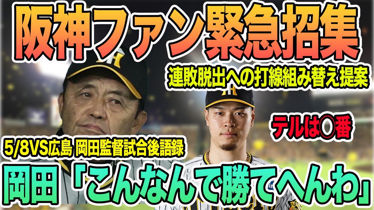 【阪神ファン緊急招集】連敗脱出へ打線組み替え提案 岡田監督「こんなんで勝てへんわ」 岡田監督一問一答 試合後語録 #阪神 #阪神タイガース #岡田監督