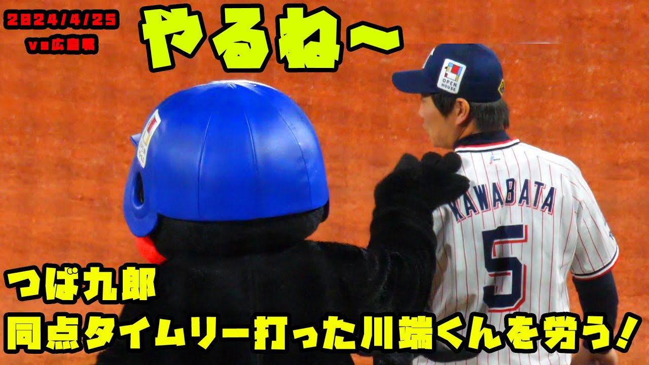 つば九郎 同点タイムリーを打った川端くんを労う!ミンゴもいっぽんじめ! 2024/4/25 vs広島