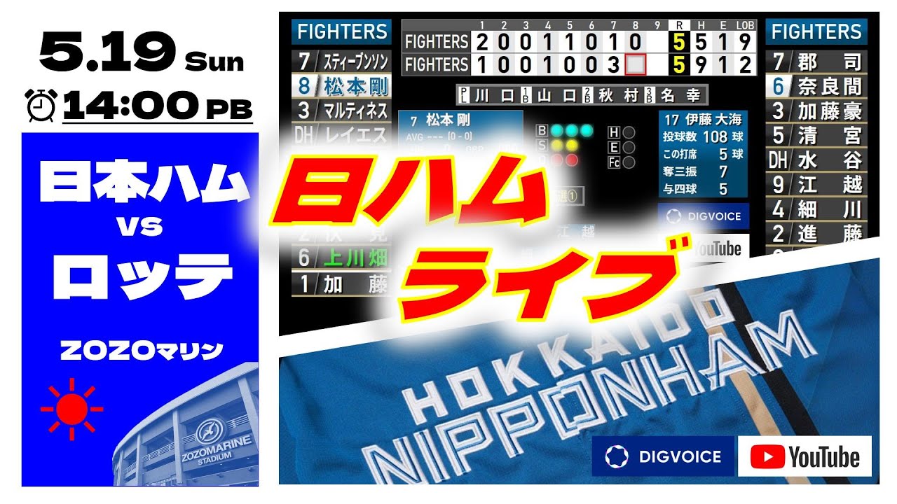 【日ハムライブ】2024年5月19日 北海道日本ハムファイターズ vs 千葉ロッテマリーンズ @ZOZOマリンスタジアム  データ解説実況ライブ