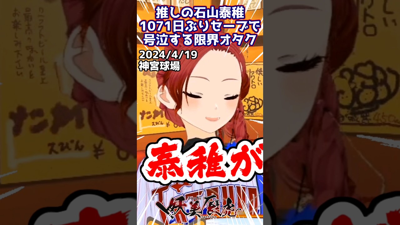 #石山泰稚 1071日ぶりセーブで限界オタクが大号泣で限界突破 #VTuber #切り抜き #東京ヤクルトスワローズ #プロ野球 #妖美辰虎 #shorts