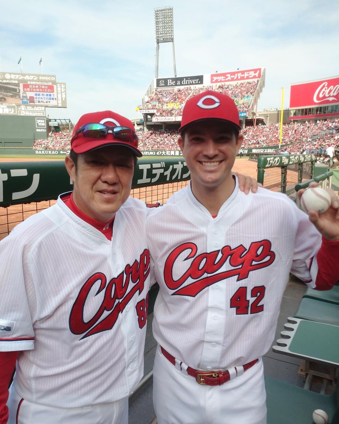 初勝利の記念に佐々岡監督とも記念撮影を行いました⤴︎笑笑