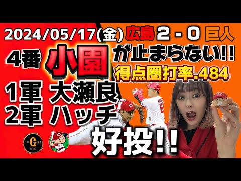 【5/17 広島 vs 巨人】また小園が打った!!大瀬良2勝目!!島内10ホールド!栗林トップタイ11セーブ!!2軍もハッチ好投!