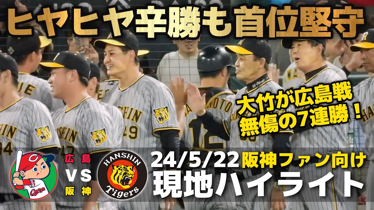 【現地ハイライト】2024.5.22 接戦を制した阪神が逃げ切り勝利!先発・大竹は7回無失点の好投で今季4勝目!広島戦無傷の7連勝!4番・大山が全打点に絡む決勝打!【広島 vs 阪神】