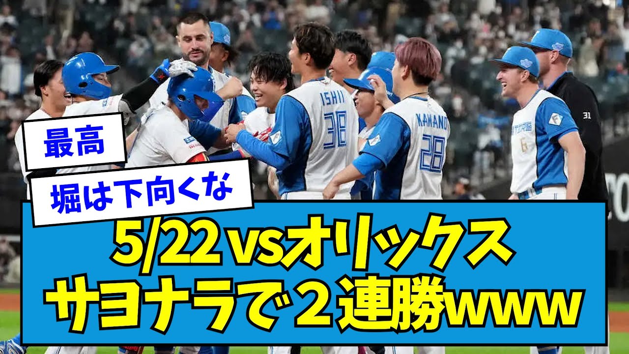 【サヨナラ勝ち】5/22 vsオリックス 日ハム・福島蓮6回途中無失点&堀瑞輝が同点満塁打被弾&万波のレーザービーム&野村佑希3塁打雄叫び&田宮裕涼サヨナラ犠牲フライ!!!!!【なんJ反応】