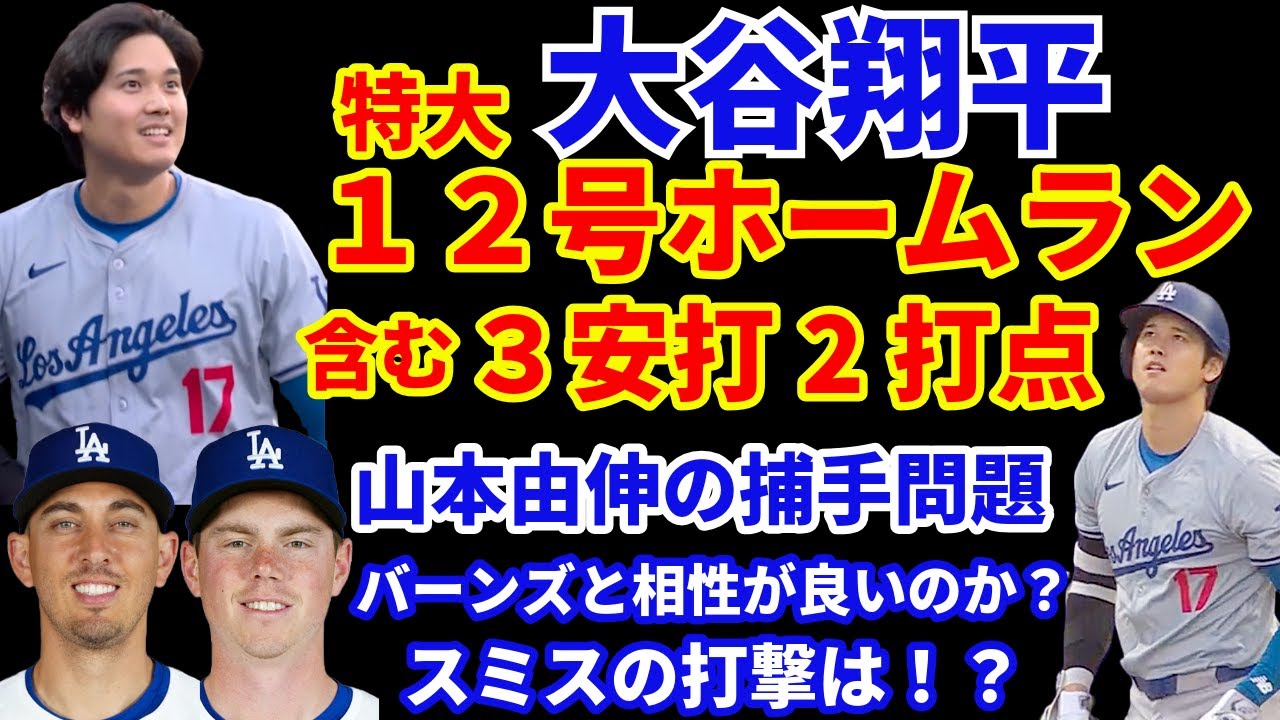 大谷翔平 特大12号ホームラン 含む3安打2打点🌋🌊 ドジャース大勝👏 山本由伸の捕手はバーンズが良いのか⁉️ ヤンキース勝利‼️ エンゼルス チャンスでスクイズ失敗が話題に💦
