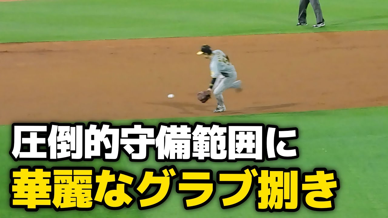 【異次元の守備範囲】中野拓夢、一二塁間の抜けそうな打球に素早く追いつき華麗なグラブ捌きでアウトにするファインプレー! 2024.5.23