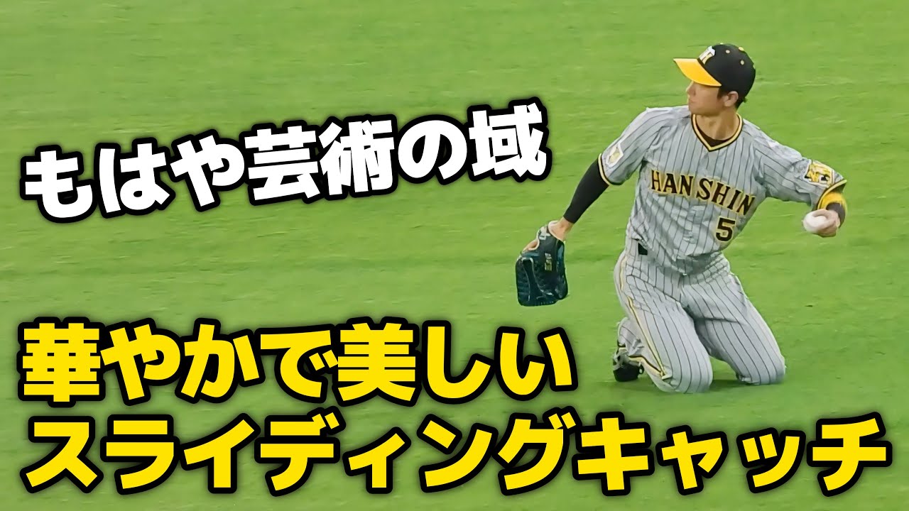 【圧倒的守備範囲】近本光司、センター前に落ちそうな打球に華麗なスライディングキャッチでアウトに! 2024.5.23