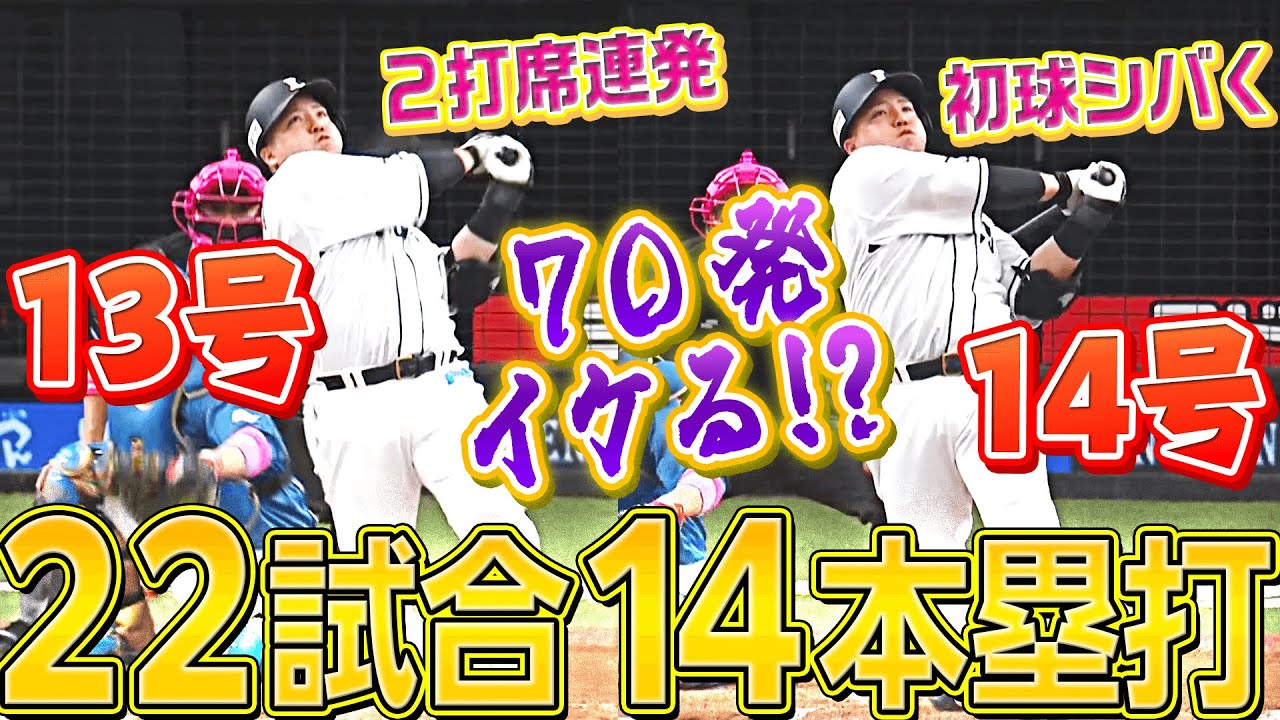 埼玉西武・山川穂高が止まらない!! 初回から2打席連発、どちらも初球を運ぶ13号2ラン&14号3ランを放ち、出場22試合で14本の超ハイペースで本塁打を量産している。この調子ならシーズン70発もイケる…!?