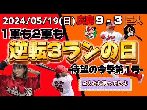 【5/19 広島vs 巨人】今季初の3タテ!2位浮上!貯金3!!末包「小園がまた打ちやがった」