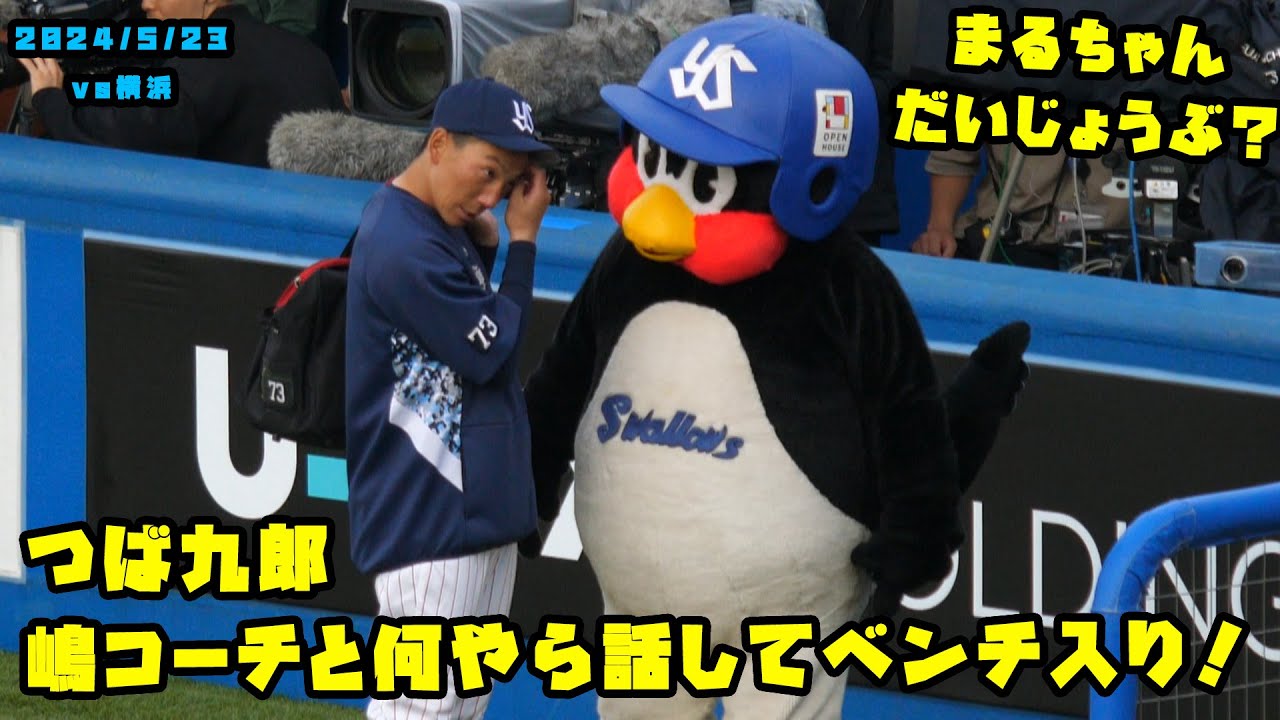 つば九郎 嶋コーチと何やら話してベンチ入り! 2024/5/23 vs横浜